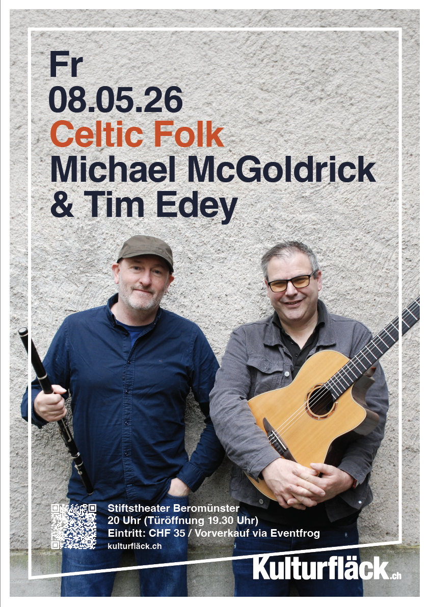 Michael McGoldrick gilt als einer der grössten Flötisten unserer Zeit und hat schon mit Mark Knopfler und Bob Dylan gespielt. Tim Edey, ein irisch-englischer Multi-Instrumentalist und einer der besten Harmonika- und Gitarrenspieler der Celtic-Folk-Szene, ist immer unterwegs auf den Bühnen dieser Welt. Sind die beiden gemeinsam on stage, treffen instrumentale Virtuosität und Leidenschaft, aber auch stets unbändige Freude am lustvollen Zusammenspiel aufeinander. Sie gehören zu den gefragtesten Künstlern der Folk-Trad-Szene und es ist ein absolutes Highlight, sie gemeinsam auf Tournee zu erleben.